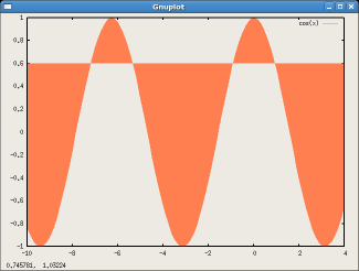| plot [-10:4] cos(x) with filledcurves y{1|2}=0.6 lt 8 |